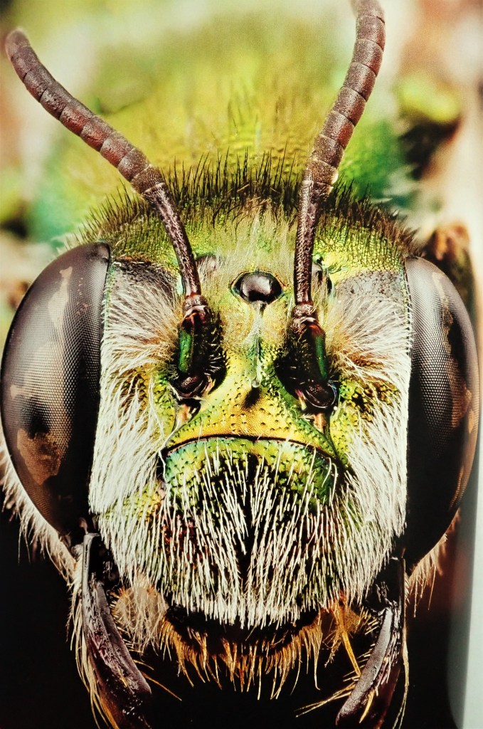 In truth there are at least 20,000 bee species worldwide. There are 275 in Britain alone. As Laurence Packer illustrates, with some truly stunning macro-photography, bees are extraordinarily diverse in colour, size, appearance, lifestyle, behaviour and range. The author offers a succinct survey of all this global complexity, maps out the 100 different genera, gives a precis of their lifestyles and then salts the book with some really great anecdotes. There are bees as big as the last two sections of my index finger. There are bees no longer than the hairs near my knuckle (less than 2mm!).